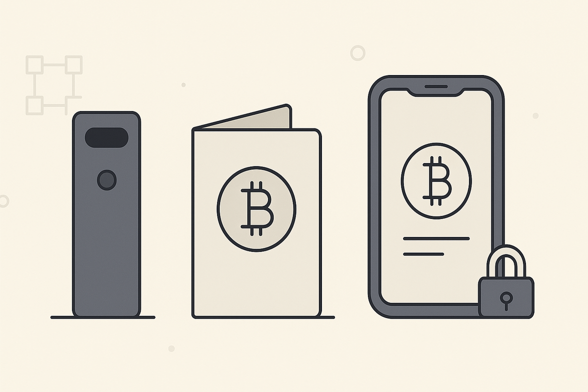 Wallets are classified by their operation and storage method. Hardware wallets are physical devices designed to securely store private keys offline (see more at https://en.wikipedia.org/wiki/Cryptocurrency_wallet). Software wallets, running as applications or web interfaces, store keys on connected devices. Paper wallets consist of printed keys or codes, providing a fully offline solution. Custodial wallets are managed by third-party services, while non-custodial wallets give users full control over their keys (Best Non-Custodial Wallets).